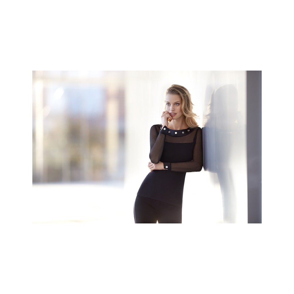 Combinació de teixit de modal amb detalls de tul elàstic. Disseny elegant i afavoridor per a samarretes de patró loose o més ajustades.