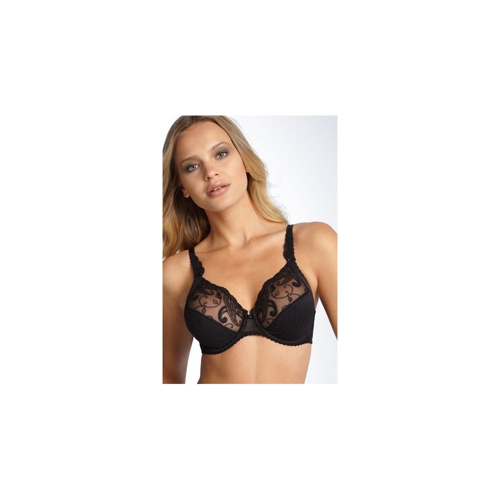 Exquisida peça de la marca francesa que combina un disseny molt actual amb la màxima comoditat. Sostenidor amb cèrcols. Copa confeccionada en tres peces amb la part superior de la mateixa en tul brodat. Proporciona un ajuse total i suau del teu pit .