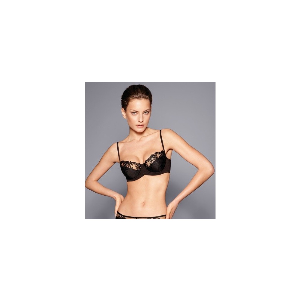 Sostenidor amb anelles de la nova col · lecció de Gemma. Part superior de les copes en delicat encaix de disseny floral. Reforços laterals per a una major subjecció del bust.