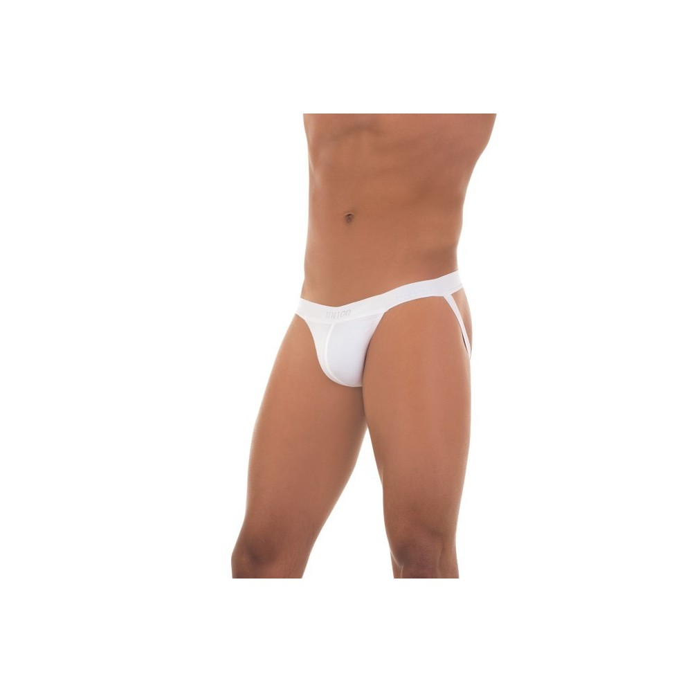 Tanga de la marca Unico, especialment pel seu sistema" "suspensor" "dissenyat per l'empresa que ajuda a mantenir la posició anatòmica de les parts més íntimes, així com un perfecte suport de les mateixes, facilitant la definició del cos i l'anatomia de l'home. Tires elàstiques laterals que ajuden a elevar els glutis per a una major definició dels mateixos.