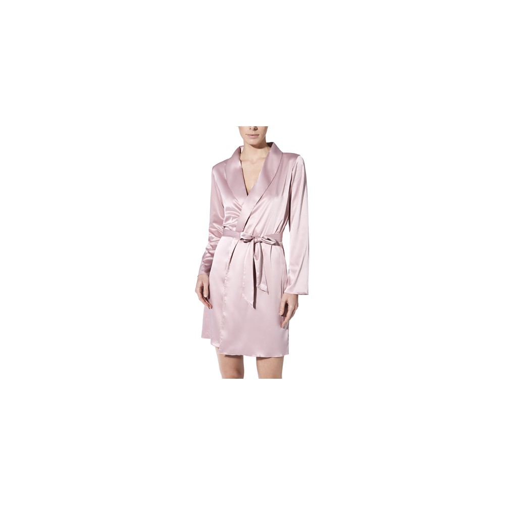 SILKY AND SOPHISTICATED line in stretch satin Lingerie With guipure appliqués. Comfortable knee-length camisole B without adjustable straps; Toning With guipure on the neckline. Wide pajama leg; elasticated waist; With pockets and top bateau neckline That matches the waist. With kimono lapels;long sleeves; tied at the waist with a wide satin belt; attached at the back. COMP .: POLYESTER; POLYAMIDE; ELASTAN