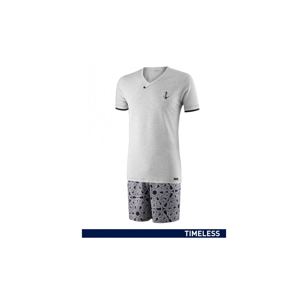- Nautical style Pyjama- Deep V-neck t-shirt with nautical embroidered- Pyjama shorts with elastic waistband- Sailor nodes print- 100% cotton for maximum comfort- 100% Made in Portugal
