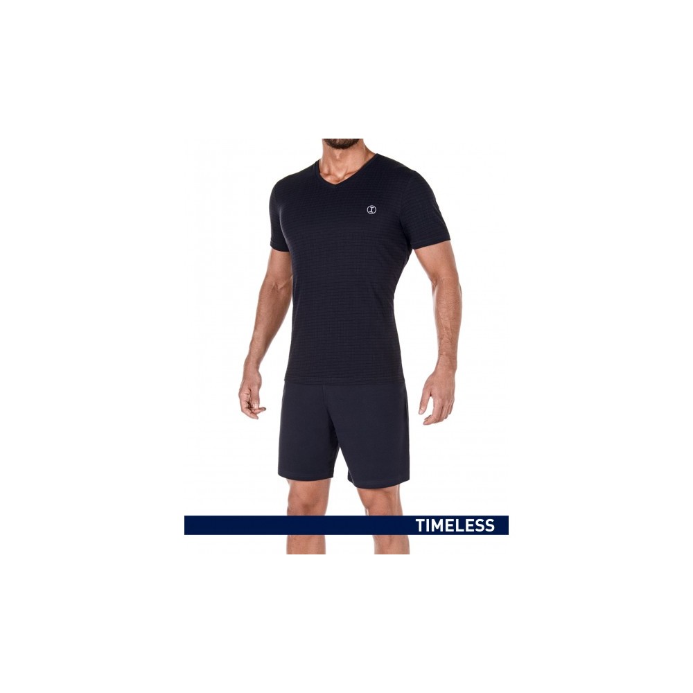 - Timeless design pyjama - T-shirt with V-neck and logo embroidered - Pyjama shorts - Discreet grid effect on the shirt - Knitwear with a sheen due to the combination of viscose and cotton