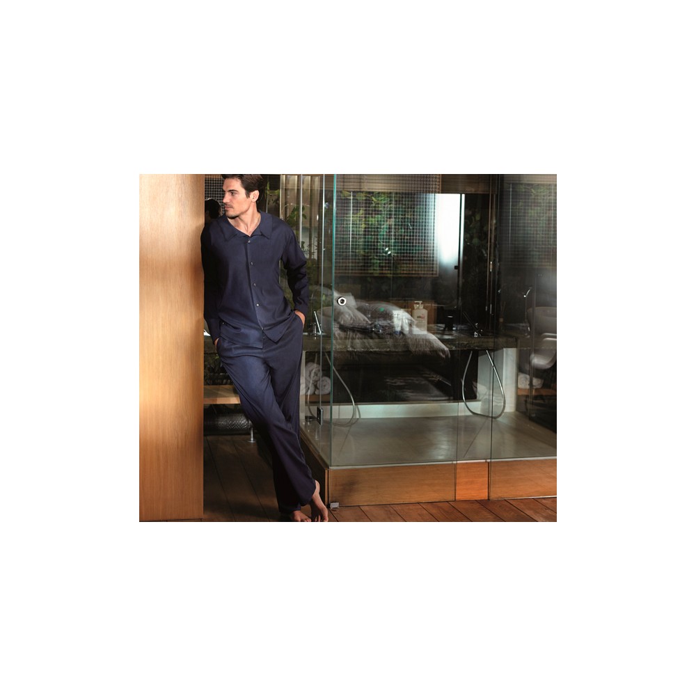 Pijama de corte clásico de Janmen. Prenda de extrema calidad en acabados. Made in Spain. 78% algodón, 20% poliester y 2/% elastano.