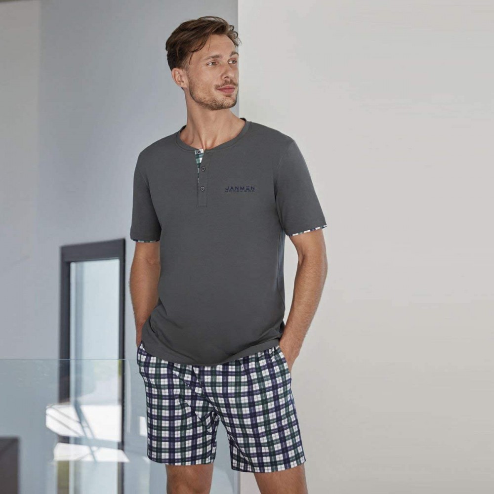 Prenda clásica en algodón. Excelentes acabados. Made in Spain. Dos piezas. Bolsillos en laterales de pantalón. Apertura 2 botones en cuello.